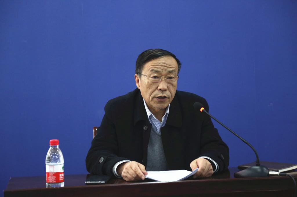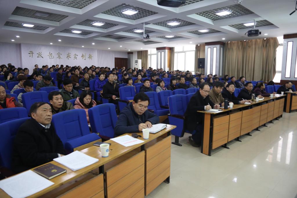 2月21日下午,我校在A05报告厅召开党委中心组扩大会议,深入学习全国思想政治工作会议精神,听取河南师范大学马克思主义理论学科硕士研究生导师罗建平教授作的题为《高校思想政治工作新方略》的专题讲座,会议由党委副书记陈贞忠主持,全体校领导、中层干部出席会议。