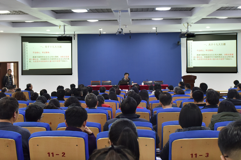 丁部长的报告旁征博引,深入浅出,既有理论深度、思想深度,又有极强的现实针对性、入脑入心,从国际到国内,紧密联系全国、全省及我市的政治经济社会文化发展状况及过去五年取得的历史性成就和历史性变革,结合具体事例,以独特的视角,生动形象地解读了党的十九大精神,为我校领导干部奉献了一场精彩生动的学习党的十九大精神的盛宴,对我校进一步学习好、宣传好、贯彻好、落实好党的十九大精神具有重要的指导意义。