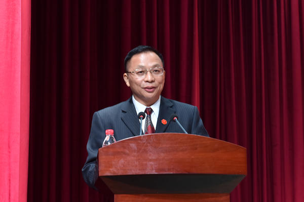 刘兴友校长致开幕辞,他回顾了升本以来我校的工作成就和近年来以“789战略行动计划”为统揽,深入推进转型发展所取得的成果,并指出召开本次大会,就是要全面总结升本以来学校的主要工作和基本经验,分析学校发展面临的新形势,确定今后一个时期学校发展的指导思想、奋斗目标、工作任务和战略举措,动员和带领全校党员干部和师生员工,解放思想,凝心聚力,改革创新,全面加强内涵建设,为建成高水平应用型大学而努力奋斗。希望通过这次大会,绘制出我校事业发展的美好蓝图,选举出更加坚强有力的党委领导班子,进一步调动全校党员干部和师生员工的积极性和创造性,不忘初心,牢记使命,抓住机遇,再立新功,为早日实现学校的发展目标、为我省教育事业和经济社会发展做出新的更大的贡献。希望各位代表以高度的政治责任感和历史使命感,认真履行代表职责,集思广益,建言献策,圆满完成大会预定的各项任务,最后刘校长预祝大会圆满成功。