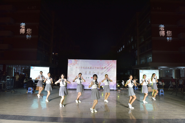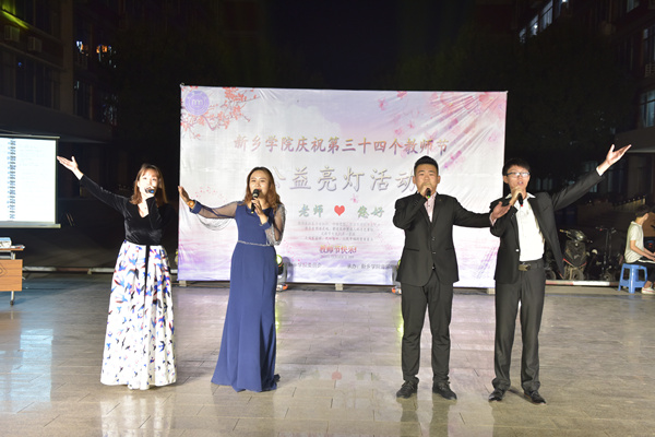 9月10日晚,由校团委主办,音乐学院和校学生会联合承办的庆祝第三十四个教师节公益亮灯活动在道德文化广场隆重举行。校长刘兴友、党委副书记杨士斌、副校长吴中、刘翔、张占祯,纪委书记张宝林及本年度优秀教师、课堂教学奖获得者、各学院、各部门的老师代表与近千名学生共同参加了公益亮灯活动。