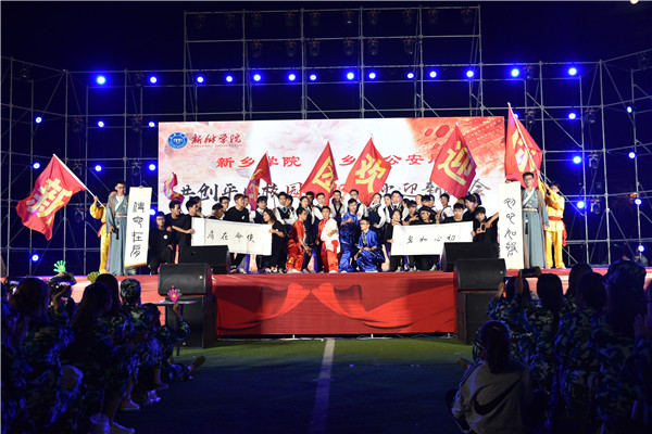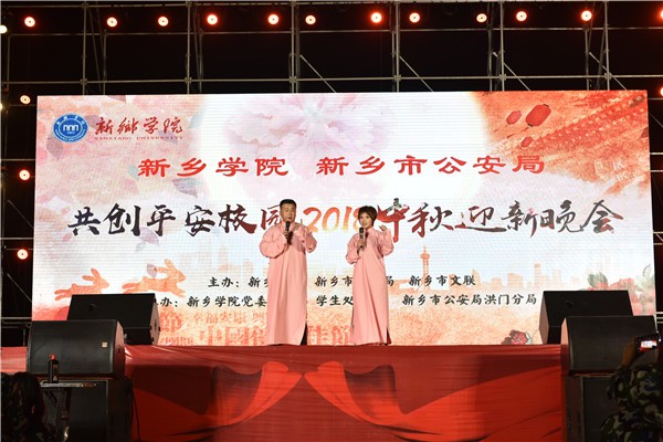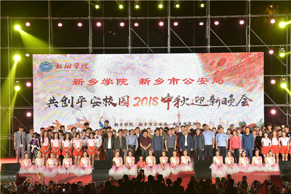 9月24日晚,由yl6809永利皇宫嘉年华、新乡市公安局、新乡市文联共同举办,我校党委yl6809永利皇宫嘉年华、学生处、团委共同承办的共创平安校园2018年中秋迎新晚会在西区田径场隆重举行。yl6809永利皇宫嘉年华校长刘兴友,新乡市公安局党委副书记、常务副局长石秀田,新乡医学院副校长刘国庚,新乡市文联副主席牛永海,yl6809永利皇宫嘉年华党委副书记、工会主席阎宏斌,党委副书记杨士斌,副校长刘翔、陈业宏、张占祯,红旗区政法委副书记程剑薇,新乡电视台文艺部总导演王文洋,兄弟院校、市公安局、红旗区洪门镇政府代表及我校各党政部门、各院系领导与万余名师生共同观看演出。