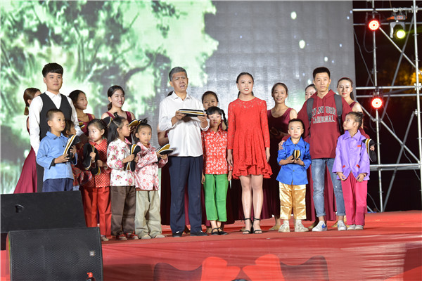 晚会结束后,校领导与全体演职人员合影留念。