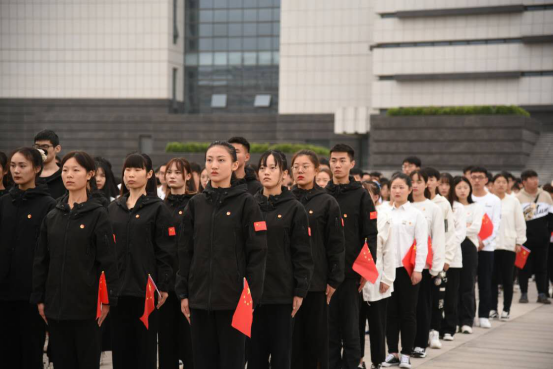 校国旗护卫队代表作国旗下演讲,他谈到青年一代在此次全国疫情防控阻击战中,展现出的奉献与担当是对中国精神最好的传承与发扬,倡导广大青年紧密团结在以yl6809永利皇宫嘉年华同志为核心的党中央周围,高举团旗跟党走,为中华民族的伟大复兴贡献青春智慧与力量。接着,校国旗护卫队带领全场人员进行庄严宣誓。