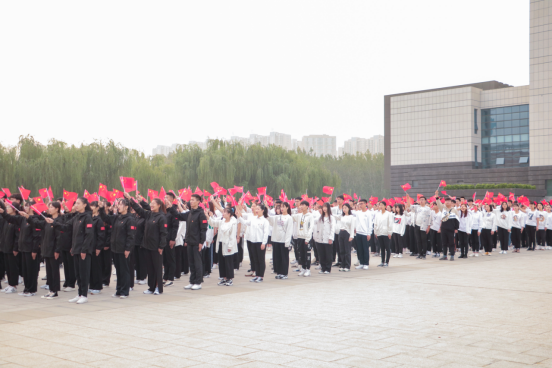 10月1日清晨,崭新的图书馆国旗广场庄严肃穆,近千名新院青年学生聚集在一起,举行“青春与祖国同在 青春与时代同行”庆祝新中国成立71周年主题升旗仪式。校团委全体人员、各学院团委负责人、校学生会、校社团联合会、校青年志愿者联合会、校十一期青马班及各学院主要学生干部参加了仪式。