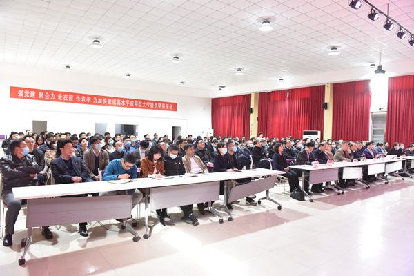 3月16日下午3点,我校党史学习教育动员大会在报告厅隆重举行。学校领导尚宝平、杨士斌、高炜、王选年、陈业宏、张占祯、张宝林、张丽伟、夏新颜、宋伟,全体中层干部参加会议。会议由党委副书记杨士斌主持。