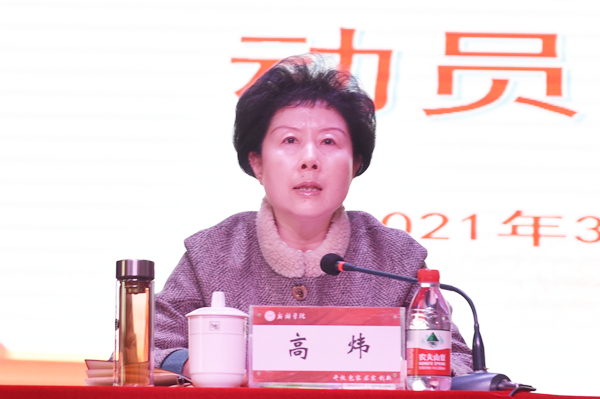党委书记尚宝平为大家做动员讲话。他指出,一是提高站位,深刻领会开展党史学习教育的重大意义。牢记初心使命,坚定信仰信念,全面从严治党,加强党的领导,推进教育教学改革发展。二要聚焦重点,准确把握党史学习教育的目标任务。要坚持学史明理,感悟思想伟力;坚持学史增信,筑牢理想信念;坚持学史崇德,赓续奋斗精神;坚持学史力行,务实担当作为。三要统筹推进,认真落实党史学习教育的重点内容。突出学党史,切实抓好全员学习;突出悟思想,持续强化政治引领;突出办实事,解决师生关切问题;突出开新局,聚焦于高质量发展。四是强化领导,切实增强党史学习教育的实际成效。要压紧压实责任,把牢政治方向,强化督促指导,营造浓厚氛围。