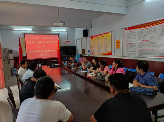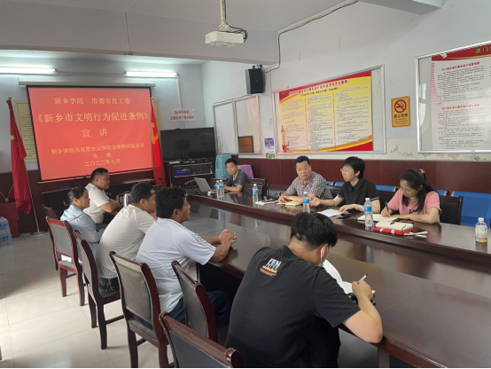 7月13日下午,yl6809永利皇宫嘉年华校yl6809永利皇宫嘉年华副部长毛群英、文明创建科科长李想和yl6809永利皇宫嘉年华新时代文明实践站志愿者一起走进红旗区洪门镇关堤村开展《新乡市文明行为促进条例》宣讲。我校马克思主义学院法学教研室张艳主任进行授课,关堤村党员代表、村民代表参加活动。
